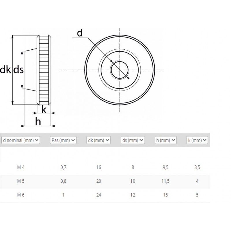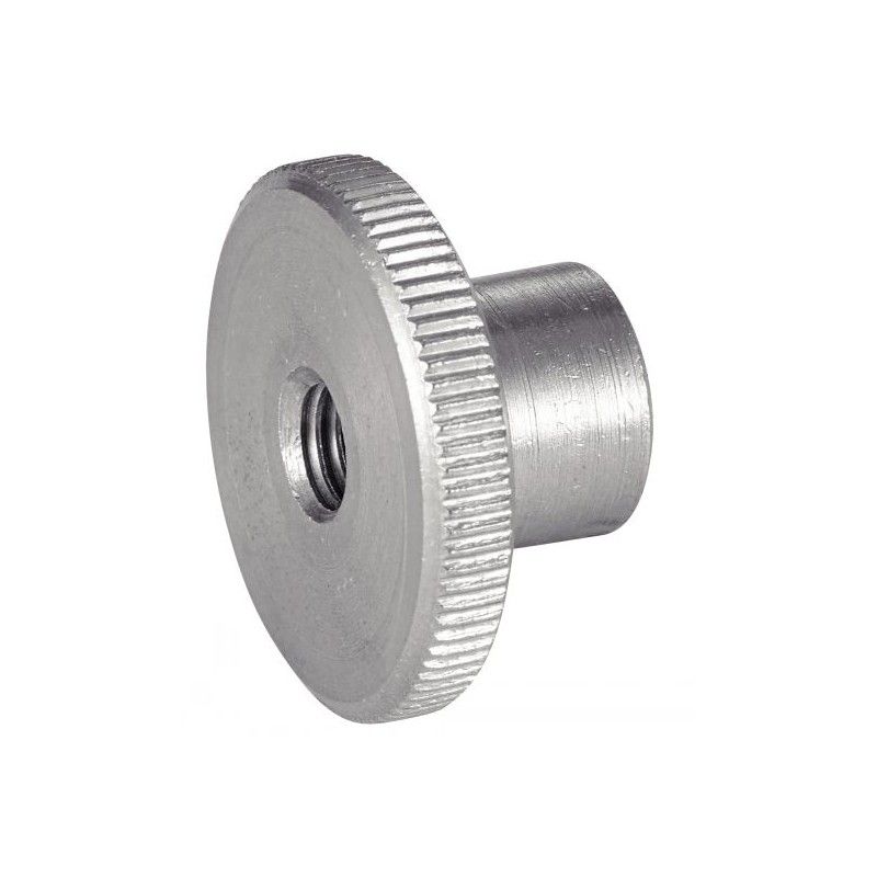 Réf : ECRMA1M10H : écrou rond moleté M10 type haut en inox A1 à visser sur des tiges filetées M10 des ventouses pour poser des plaques, des panneaux.