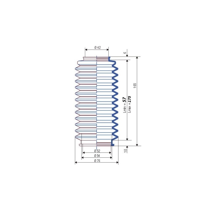 | 3008 NBR soufflet 42 mm et 52 mm long fixe 165 mm | 10 | 13,65 € | 16,38 € |