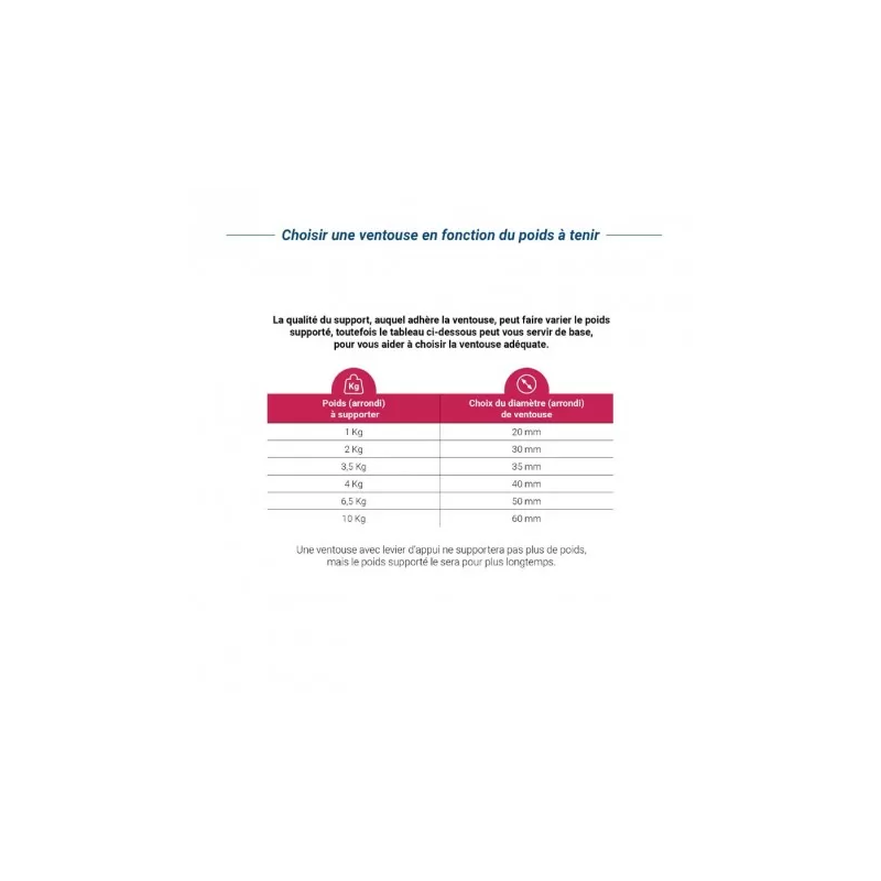 deux ventouses 40mm avec lien 55 mm : - tenir des essuis glaces, des antennes lors du lavage, des décorations, des serviettes pour un poids de 4 kg - fixer des pièces sur murs lisses, vitres ou vitrines. - à poser sur surface lisse et propre - disponibles en noir, blanc et rouge en cas d'indisponibilité de ce produit, vous pouvez cliquer ici pour...