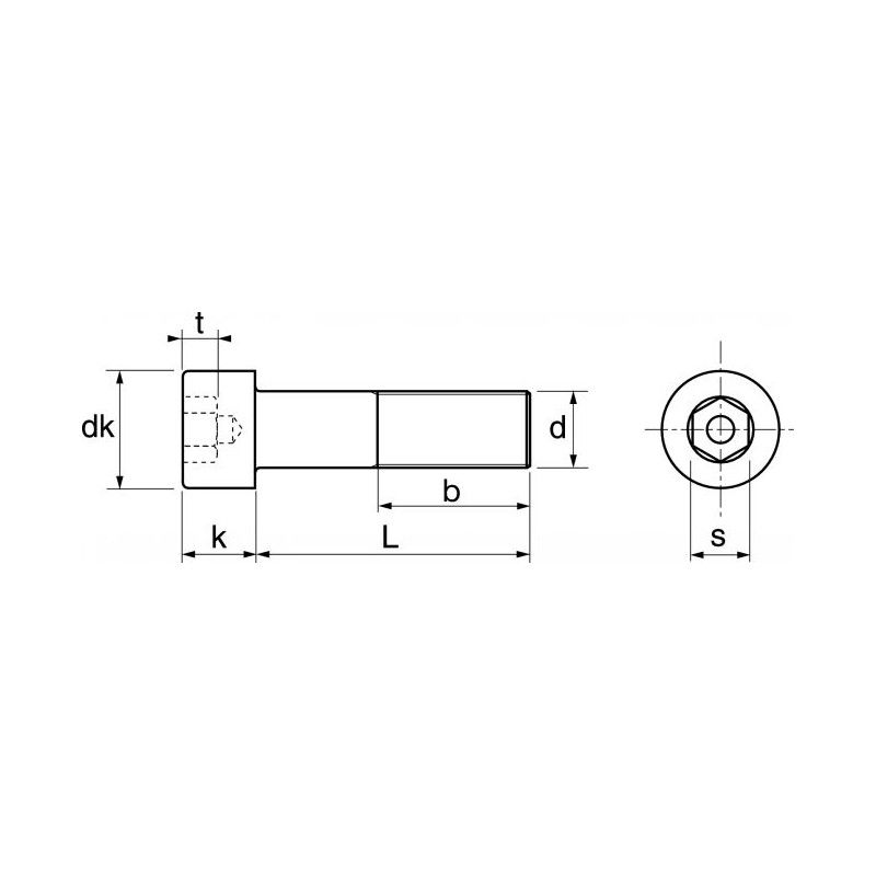 vis à métaux tête cylindrique réduite 6 pans creux avec trou de guidage M4 x 16mm en inox A2 - din 6912